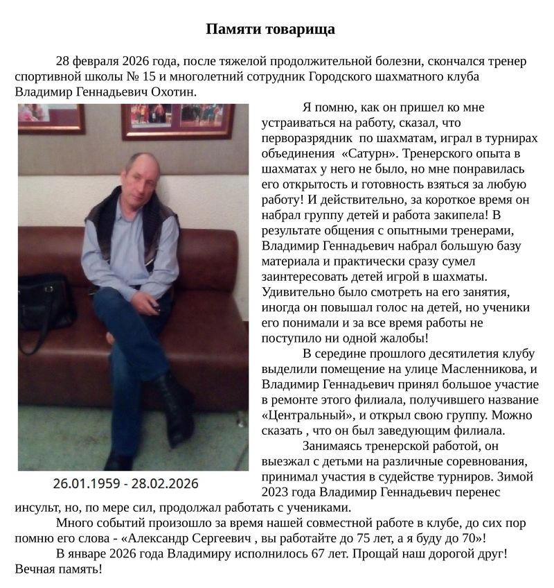 - Турнир памяти ветеранов омских шахмат